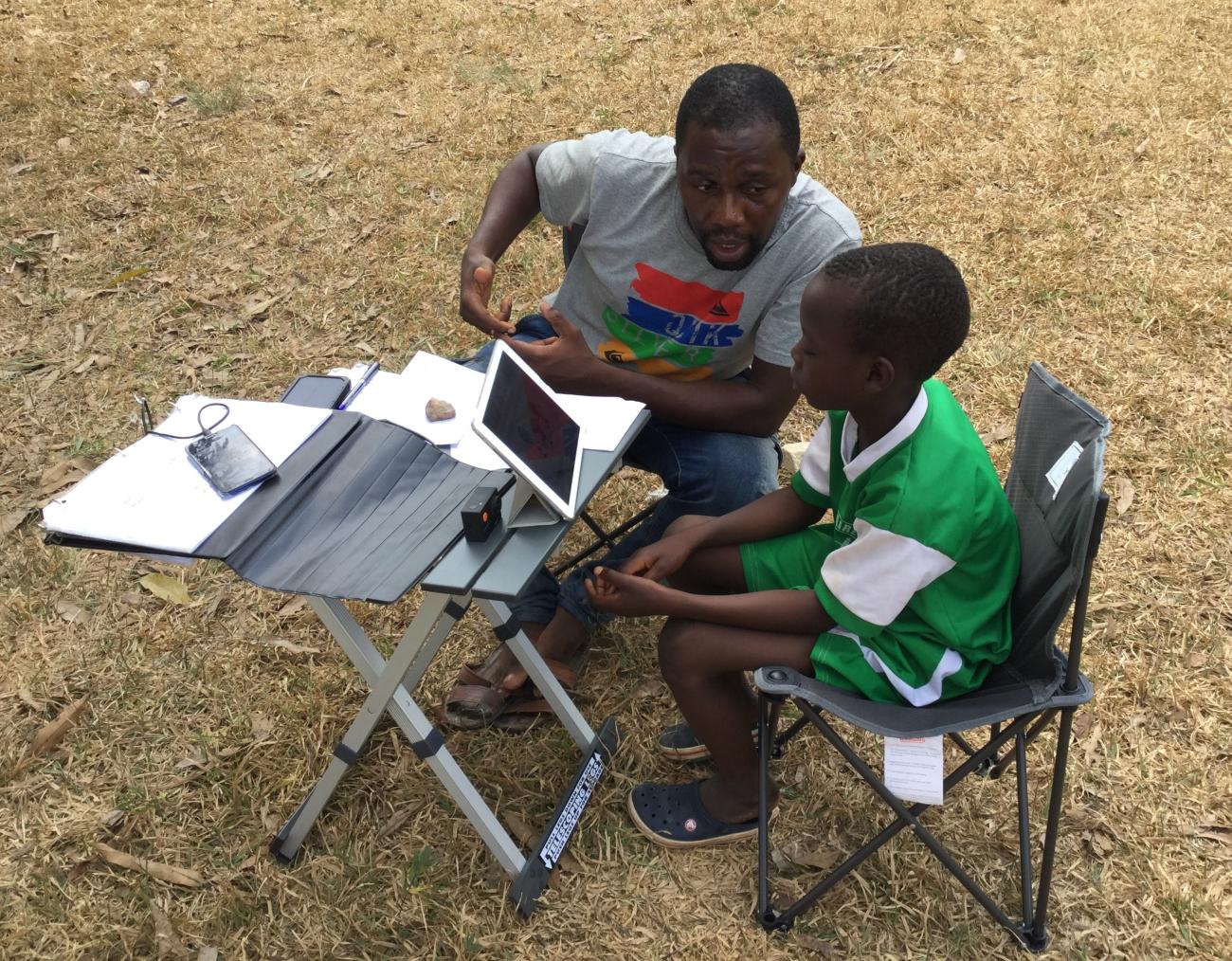 A child in Côte d'Ivoire is given a battery of tasks designed to measure different components of EF skills. (Photo: Michael Sulik)